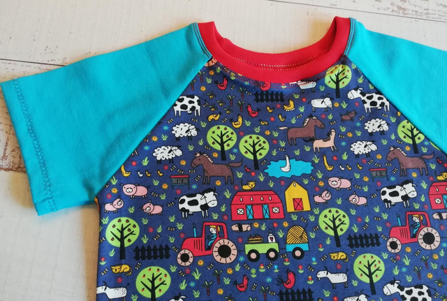 A brilliant raglan style t-shirt that your child will love! The main body of the t-shirt has a wonderful array of farmyard animals and tractors on a dark blue background/ The sleeves of the t-shirt and neckband are colour coordinated in blue and red. The t-shirts are made from a lovely soft and stretchy cotton, meaning your little one will be nice and comfy. As each of these items are handmade, sizes may vary ever so slightly. If you are looking for a different size, please contact me and I can made to order.