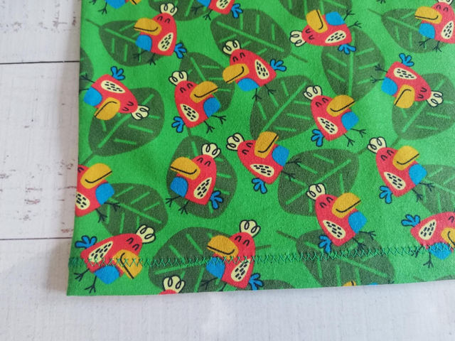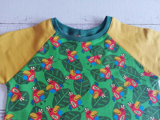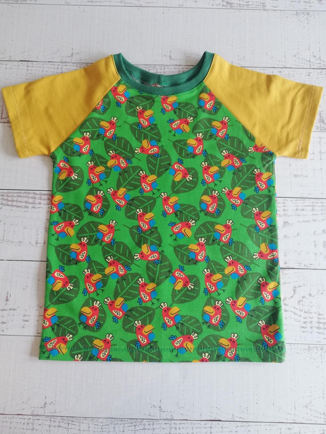 A brilliant raglan style t-shirt that your child will love! The main body of the t-shirt is green with parrots all over. The sleeves of the t-shirt and neckband are colour coordinated in yellow and green. The t-shirts are made from a lovely soft and stretchy cotton, meaning your little one will be nice and comfy. As each of these items are handmade, sizes may vary ever so slightly. If you are looking for a different size, please contact me and I can make to order.